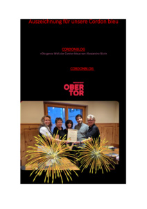 2024-01-23 Auszeichnung-fuer-unsere-Cordon-bleu Schreiben Sie einen Kommentar Antworten abbrechenYour email address will not be published.CommentName * E-Mail * Website Meinen Namen, meine E-Mail-Adresse und meine Website in diesem Browser für die nächste Kommentierung speichern. Δ Telefon: 081 925 35 90 info@restaurant-obertor.ch Städtlistrasse 25 7130 Ilanz / Glion Öffnungszeiten: Mittwoch bis Sonntag abends ab 17.00 h Samstag & Sonntag 11.00-14.00 h Warme Küche: 11.30-13:30 h / 18.00-21.00 h Ruhetage Mo & Di